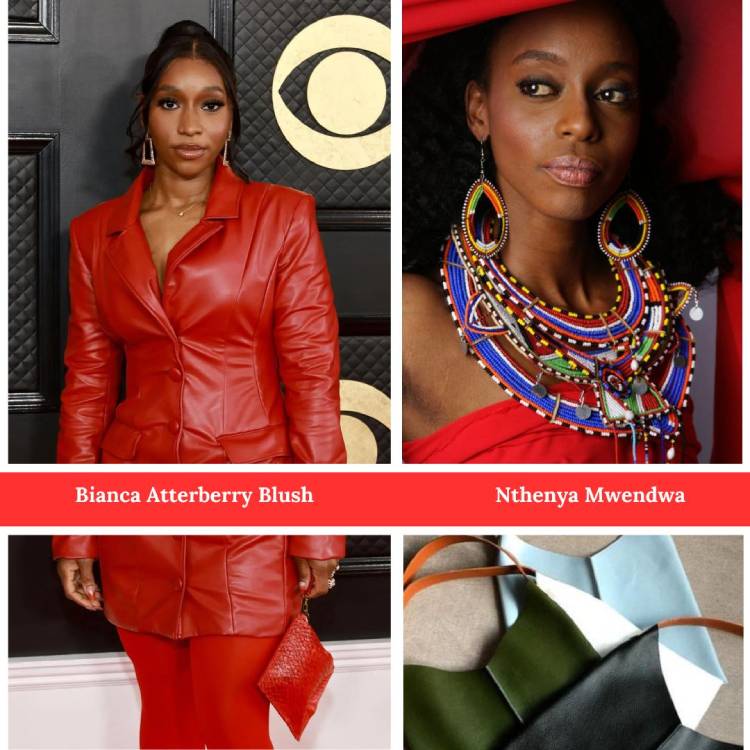 Popular singer, songwriter and producer Bianca Atterberry alias Blush wore a Kenyan-made red fish leather wristlet made by Nthenya Mwendwa to the Grammy's red carpet. Atterberry has worked with Demi...